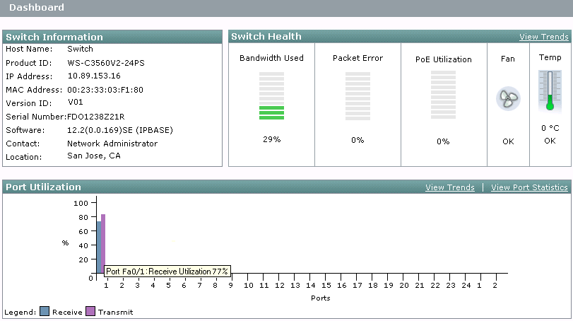 graphs, and animated indicators to simplify switch monitoring tasks.