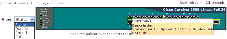 (PoE) status. Note that the speed and duplex mode for a port only appear
