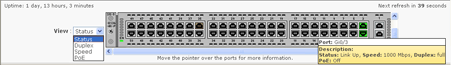 Move the pointer over a port to display specific information about the port and its status. The speed and duplex mode for a port only appear in the pop-up window when a device is connected to the port. For dual-purpose ports, the Type field in the pop-up window displays 10/100/1000BaseTX for the copper uplink port whether or not the port is active. The Type field also displays either the type of SFP module installed or Empty if a module is not installed. The PoE status is available if the switch is a PoE switch.
