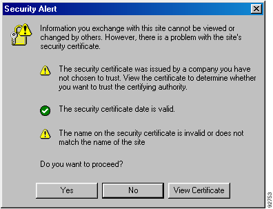 If you choose Yes, the switch displays another message that asks if you want to proceed by using the security certificate of the switch.