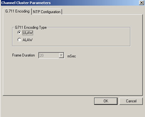 MLC 8000 Configuration Tool Channel Cluster Parameters Window G.711 Encoding Tab