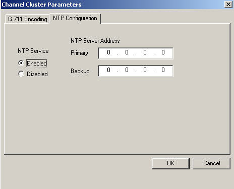 MLC 8000 Configuration Tool Channel Cluster Parameters Window NTP Configuration Tab