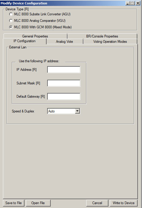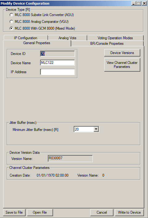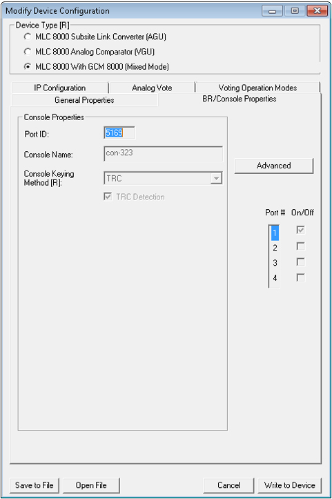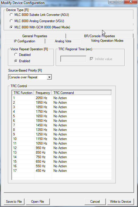 - Verify that radio button MLC 8000 With GCM 8000 (Mixed Mode) is selected as the device type in the Device Type field at the top of the window . If not already selected, click MLC 8000 With GCM 8000 (Mixed Mode).