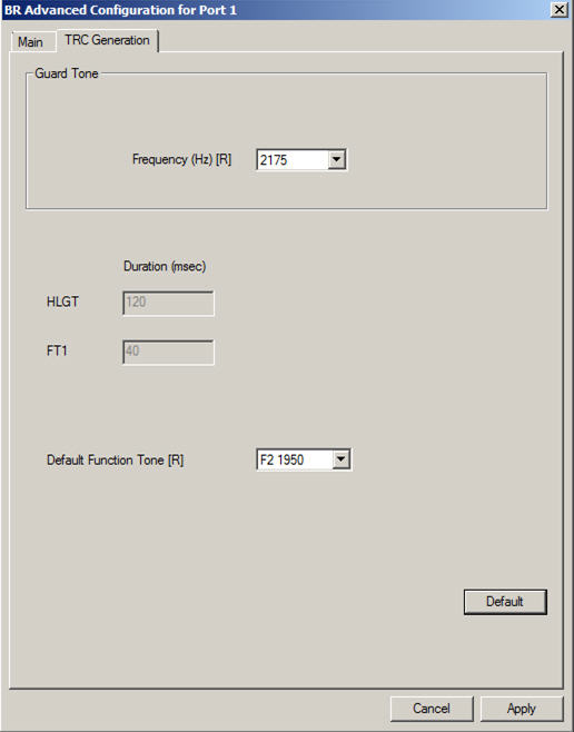Modify Device Configuration Window – BR Advanced TRC Generation Tab for an AGU in a Non IP Simulcast System