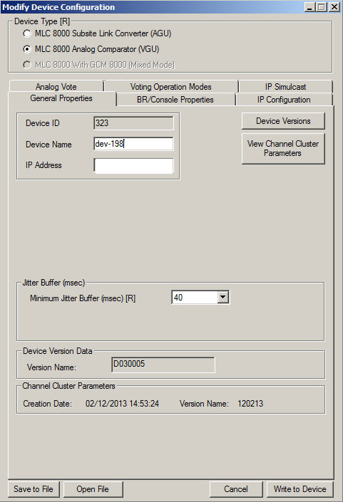 Modify Device Configuration Window – General Properties Tab for a VGU in an IP Simulcast System