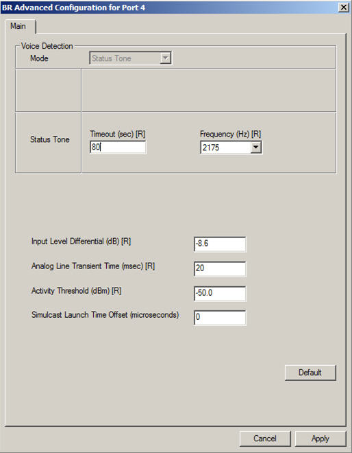 - Set the threshold for the energy level detected on the 4–wire line using the Activity Threshold (dBm) field. Signals with an energy level below this threshold for a tone using status tone timeout are determined as a disconnected line.