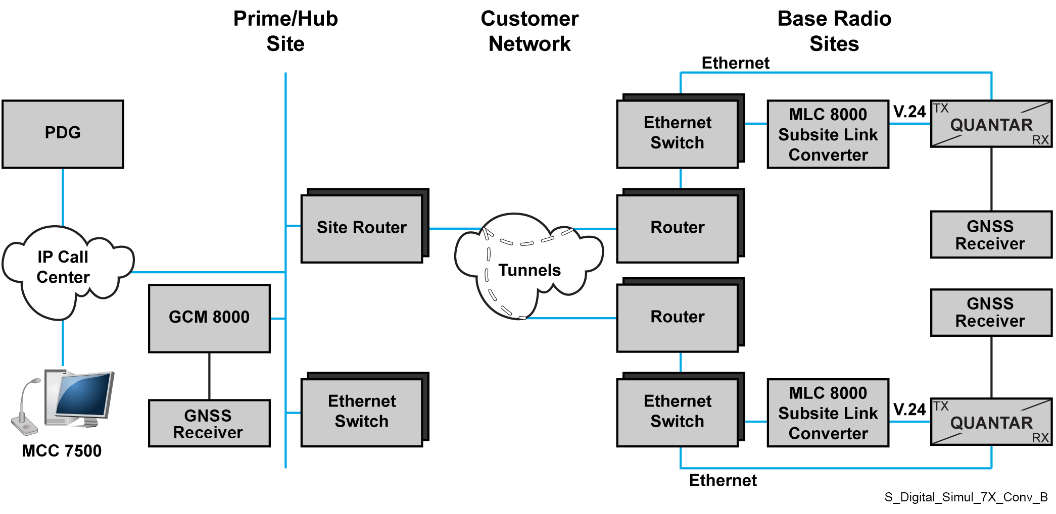 ImportantHigh-level diagrams are provided as examples only and are not to be used for system planning purposes. “GPS” in the diagram refers to a Simulcast Site Reference device. This service is now called Global Navigational Satellite System (GNSS).