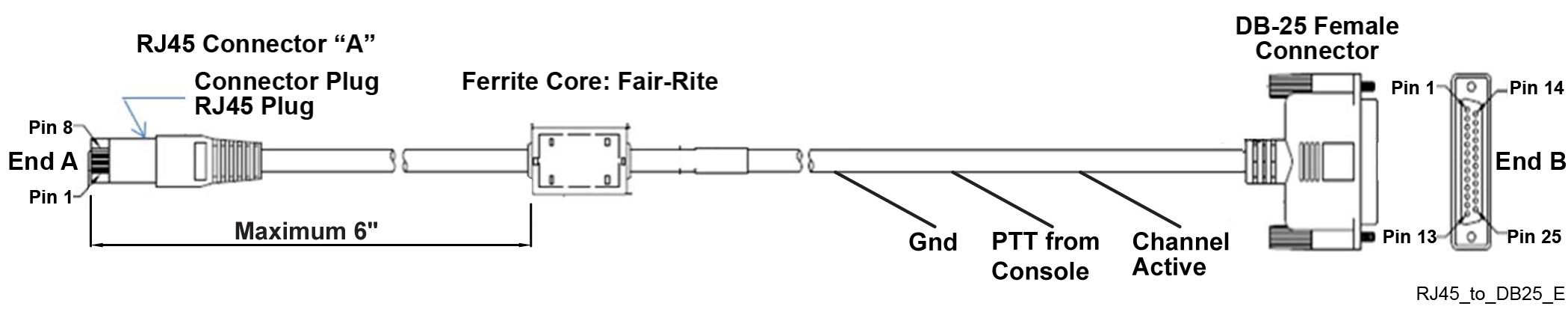 The following figure shows the cable from the 4W MLC 8000 VGU to the MC2500 analog console. This cable has a ferrite core, Fair-Rite® (part number: FHN9045A).
