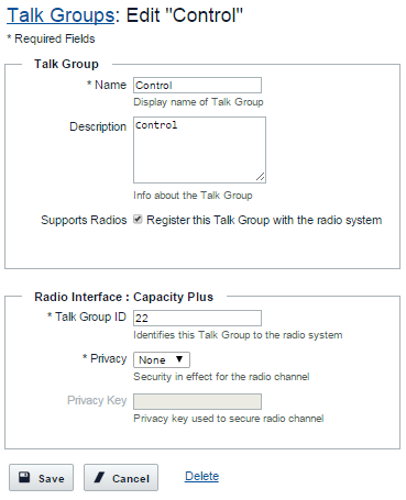 The Talk Groups page opens and the deleted Talk Group no longer appears.