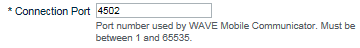 The Setup > WAVE Mobile Communicator > Connection Port (default 4502) is determined by the WAVE 3000 Administrator.