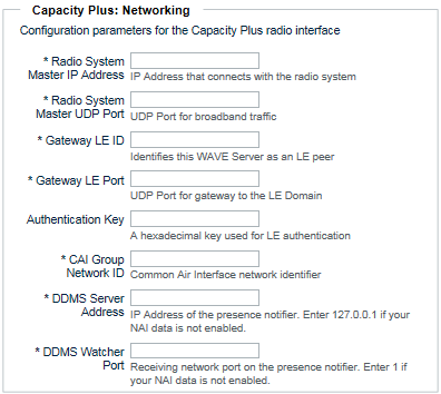 D. In Gateway LE Port, enter the UDP port that serves as the gateway to the LE (Link Establishment) domain. The WAVE 3000 Server uses this port to send and receive audio and keepalive messages with the Capacity Plus radio system.