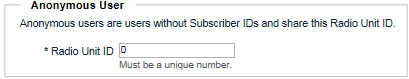 8. In the Anonymous User section, enter a value to identify anonymous WAVE users to the Capacity Plus Radio system. This field is used to identify WAVE users without Subscriber IDs. Capacity Plus radio system administrators should use the specified ID in this field to identify an anonymous WAVE user to radio users.
