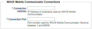 A. In Connection Address, enter the IP address or the host name of the server used by WAVE clients to connect to the WAVE 3000 Server. This is the address WAVE users must enter when they sign in.