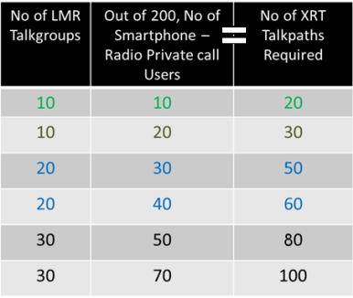 XRT Talk Paths Required = Number of LMR Talk Groups + Number of Private Call users.