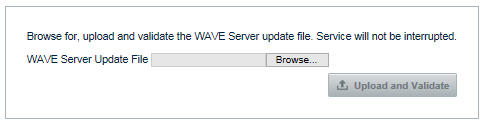3. In the Update WAVE Server area, click the Browse or Choose File button and navigate to the installation file. Then click the Upload and Validate button.