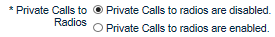 7. In Private Calls to Radios, enable or disable Private Calls to Radios. Enabling Private Calls to Radios for broadband users consumes a Talk Path on the XRT9000/9100. Disabling Private Calls does not affect Talk Group communication between broadband and radio users. Turning Private Calls to radios off does not block broadband to broadband Private Calls.