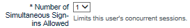 8. In the Number of Simultaneous Sign-ins Allowed list, select the number of times a broadband user may sign-in simultaneously using more than one device. Note that multiple sign-ins each consume a license (CAL) on the WAVE 3000 Server when they are signed-in.