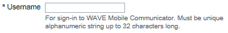 5. In the Username field (for WAVE users only) specify a Username. The Username is used as a sign-in name on mobile clients, and does not appear to other users.