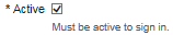 A cleared check box indicates an inactive user. A selected checkbox indicates an active user. Users are active by default.