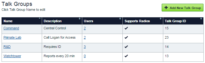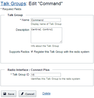 The Talk Groups page opens and the deleted Talk Group no longer appears.