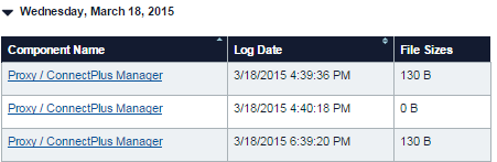 Use the headers to sort by Component Name or Log Date.