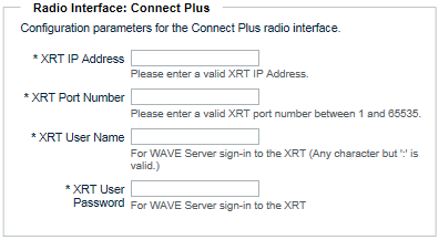 The Setup > Radio System Interface page configures the WAVE 3000 Server for connection to the Connect Plus radio system. This section identifies individual fields if network modification is required.If you intend to reconfigure the WAVE 3000 Server for use with a different radio system, then follow the setup instructions starting with: Specifying the Radio System Interface Talk Groups and Users will be deleted if you change the Radio System Interface.