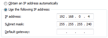 Enter a Subnet address. By default, this address is 255.255.255.240.