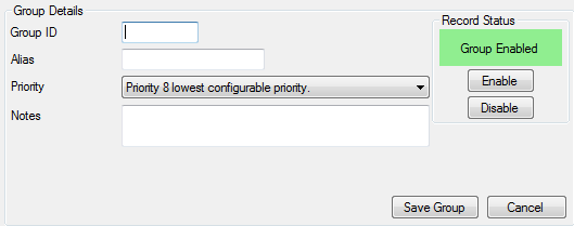 3. In the Alias field, enter an Alias for this Group. In the WAVE 3000 Server, the Alias is represented by a Talk Group Name.