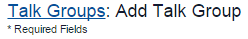 The Talk Groups page opens displaying a list of existing Talk Groups. At initial setup, this page will be empty.