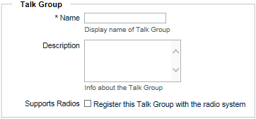 A. In the Name field, enter the name of the Talk Group as it will appear to broadband users.