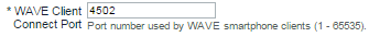 The WAVE Client Connect Port (default 4502) is determined by the WAVE 3000 Server administrator and set in the Setup > Broadband Clients page.