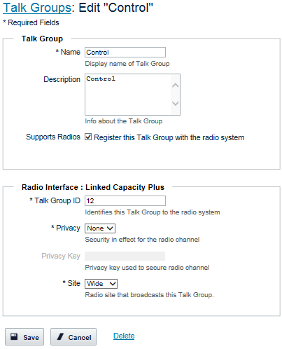 The Talk Groups: Edit page opens.