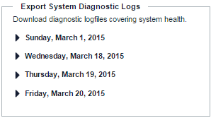 4. In the Export System Diagnostics Logs area, click the date containing the logs to download.