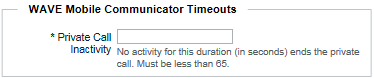 In Private Call Inactivity, specify the call timeout in seconds. This applies to all Private Calls between broadband-to-broadband or radio-to-broadband. If no communication occurs over this duration during a Private Call, then the broadband client times-out and disconnects the Private Call Session.