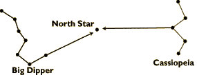 To locate the North Star, the Big Dipper (Ursa Major) and Cassiopeia are helpful, because neither of these constellations ever sets and thus are always visible on a clear night. After finding the North Star, imagine a line drawn from the North Star perpendicular to the earth. The point at which the line reaches the horizon is north. There isn't a star bright enough to be easily recognized near the south celestial pole, so you can use instead a constellation known as the Southern Cross. It has five stars, of which the brightest four form a cross that tilts to one side. The pointer stars are the ones that form the long axis of the cross. Determine south by imagining a distance five times that of the two pointer stars. The end of the imagined line is in the general direction of south. Look to the horizon for a landmark to steer by. Moon-You can use the moon to determine a rough east - west direction. If the moon rises before the sun sets, the illuminated side will be west. If the moon rises after midnight, the illuminated side will be east. Moss- The old saying that moss grows on the north side of a tree is only partially accurate. Moss does grow on the north side of a tree; however, it also grows on the south and all the way around. In reality, moss growth is more vigorous and lush on the side of the tree facing the equator. Vegetation and Moisture-North-facing slopes receive less sun than south-facing slopes and are therefore cooler and damper. In the summer, north-facing slopes retain patches of snow. In the winter, trees on south-facing slopes are the first to lose snow and the ground snowpack is more shallow. Making a Compass-Use a piece of ferrous metal that can be shaped into a needle or use a double-edged razor. You will also need a piece of non-metallic string from which to suspend the metal. Polarize the needle by slowly stroking it in one direction through your hair, using deliberate strokes. You can also polarize the needle by stroking it repeatedly at one end with a magnet, rubbing in one direction only. If you have a 2 volt or higher battery and some wire, you can polarize the needle electrically. If the wire isn't insulated, wrap it in paper to prevent contact. Coil the wire and place the ends on the battery's terminals. Repeatedly insert one end of the metal object in and out of the coil. The needle will become an electromagnet. When suspended from a non-metallic string or floated on a small piece of wood in water, the needle will align itself with a north - south line. |