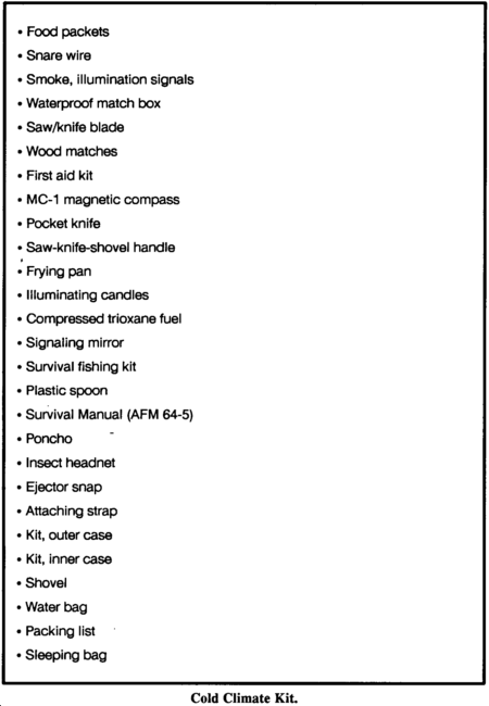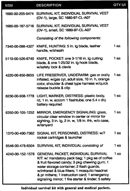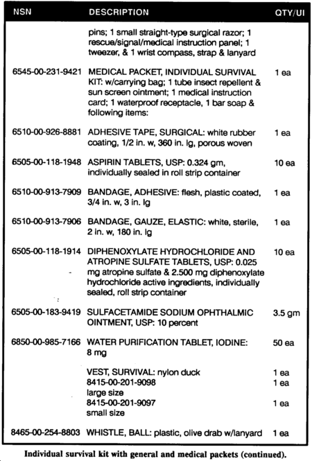 Items contained in the kits may be ordered separately through supply channels. All survival kits and vests are CTA 50-900 items and can be ordered by authorized units.