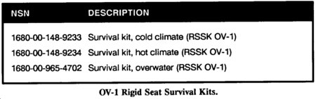 U.S. Army aviators flying fixed-wing aircraft equipped with ejection seats use the SRFU-31/P survival vest. The individual survival kits are stowed in the seat pan. Like all other kits, the rigid seat survival kit (RSSK) used depends on the environment.