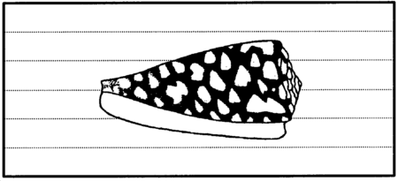 These cone-shaped shells have smooth, colorful mottling and long, narrow openings in the base of the shell. They live under rocks, in crevices and coral reefs, and along rocky shores and protected bays in tropical areas. All have tiny teeth that are similar to hypodermic needles. They can inject an extremely poisonous venom that acts very swiftly, causing acute pain, swelling, paralysis, blindness, and possible death within hours. Avoid handling all cone shells.