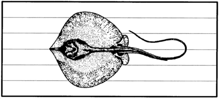 Stingrays inhabit shallow water, especially in the tropics and in temperate regions as well. All have a distinctive ray shape but coloration may make them hard to spot unless they are swimming. The venomous, barbed spines in their tails can cause severe or fatal injury.