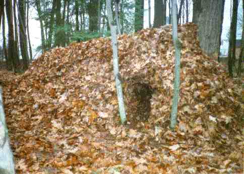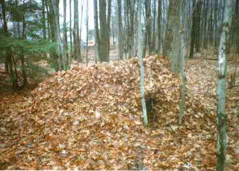 | Start piling on debris thick and high. Note the steep walls for shedding water. | ![]() |