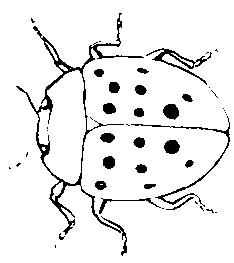adult varies from a yellow to copper color with 16 black spots on its back.