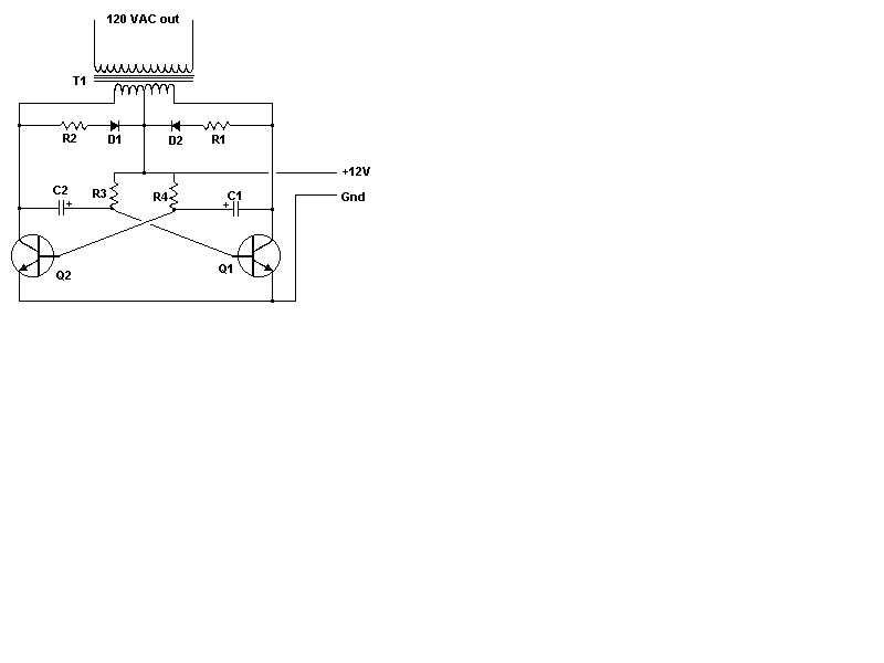 and T1 is a 15 A transformer, then the inverter will supply about 300 watts.