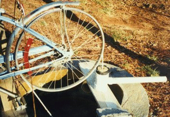 of a bicycle (with the tire removed) and putting a pulley and weight at the