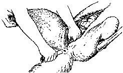 remove the legs by cutting close to and in front of the hipbone and between